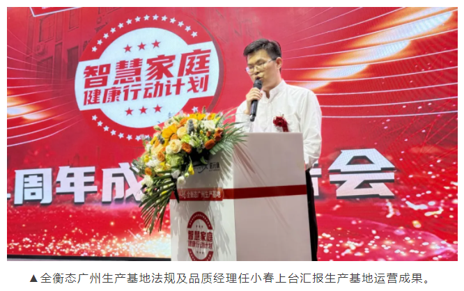 報告會上,全衡態(tài)廣州生產(chǎn)基地法規(guī)及品質(zhì)經(jīng)理任小春先生率先登臺,詳細(xì)匯報了生產(chǎn)基地的運(yùn)營成果。他激情澎湃地闡釋了全衡態(tài)對生產(chǎn)環(huán)節(jié)的嚴(yán)苛標(biāo)準(zhǔn)——從原料篩選到成品檢測,每個環(huán)節(jié)均以“零瑕疵”為目標(biāo)。任小春強(qiáng)調(diào),自創(chuàng)立以來,全衡態(tài)始終以“讓科技進(jìn)入家庭,締造智慧健康生活”為使命,緊貼時代需求,持續(xù)加大研發(fā)投入,通過科技賦能打造更高品質(zhì)的健康產(chǎn)品,為千家萬戶提供更優(yōu)質(zhì)的健康解決方案。